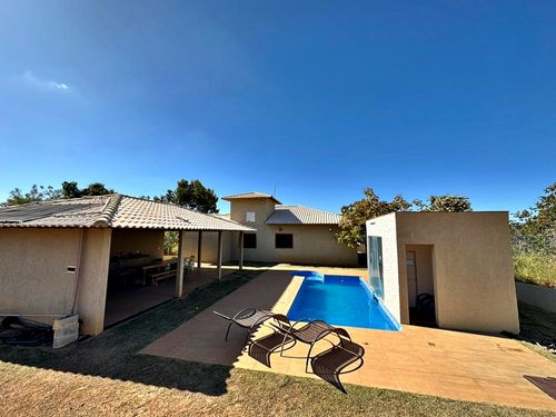 Excelente casa em condomínio fechado próximo ao centro da Serra do Cipó Condomínio com portaria 24 horas, ronda, espaço gourmet e quadra de tênis. Casa com 3 quartos, sendo 1 suíte, sala ampla cozinha e banheiro com pre aquecimento solar. Garagem coberta para 4 veiculos. Piscina aquecida com iluminacao em led, cascata e sauna integrada Espaço gourmet de frente para a piscina com churrasqueira e fogão a lenha Campo gramado para futebol