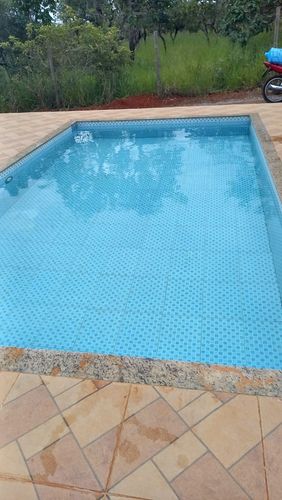 Lote de 1.000 m² e casa com 2 quartos, 2 banheiros, cozinha externa com churrasqueira e piscina.